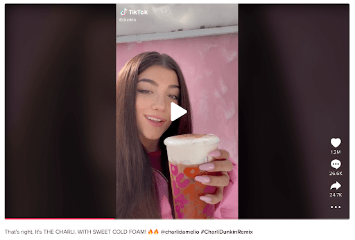 The brand launched a campaign under the hashtag #CharliXDunkinContest, and Dunkin released a new beverage named "The Charli."
